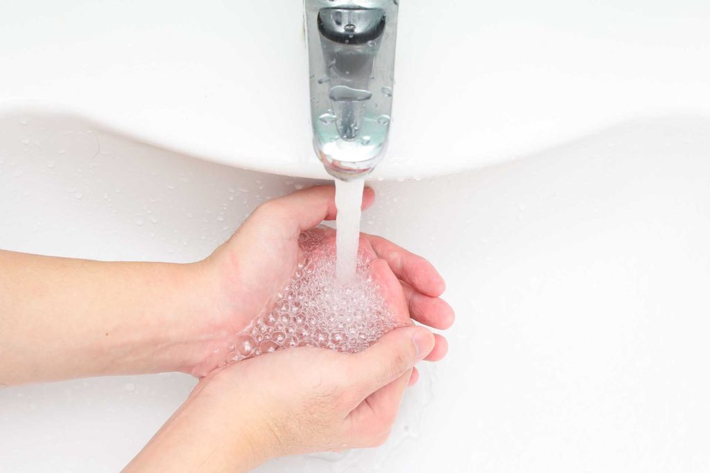 Il lavaggio delle mani può essere fatto con ACQUA E SAPONE. La durata complessiva di tale lavaggio dura tra i 40 e 60 secondi.